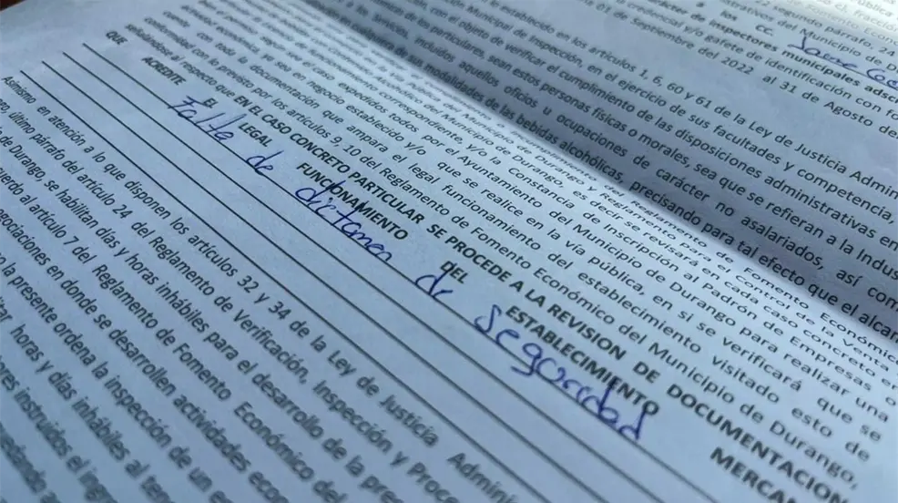 DURANGO, Durango.- Durante los recientes operativos que se realizan habitualmente por parte de Inspectores Municipales, se han detectado negocios los cuales no han tenido su papelería en regla.