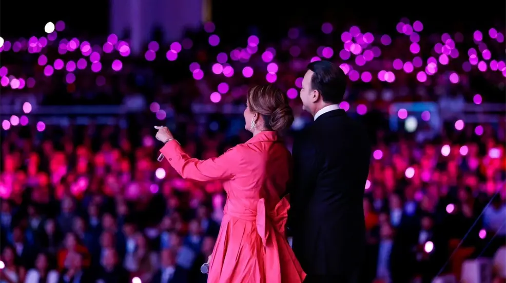 Otro de los momentos más importantes e icónicos, fue cuando subió al escenario la primera dama de Durango, Marisol Rosso, la cual, al momento de dar su informe de actividades del DIF Estatal, logró uno de los momentos más Instagrameables, el pintar de rosa toda la veía, gracias a las pulseras que portaban los asistentes, las cuales en un momento determinado encendieron de este color.