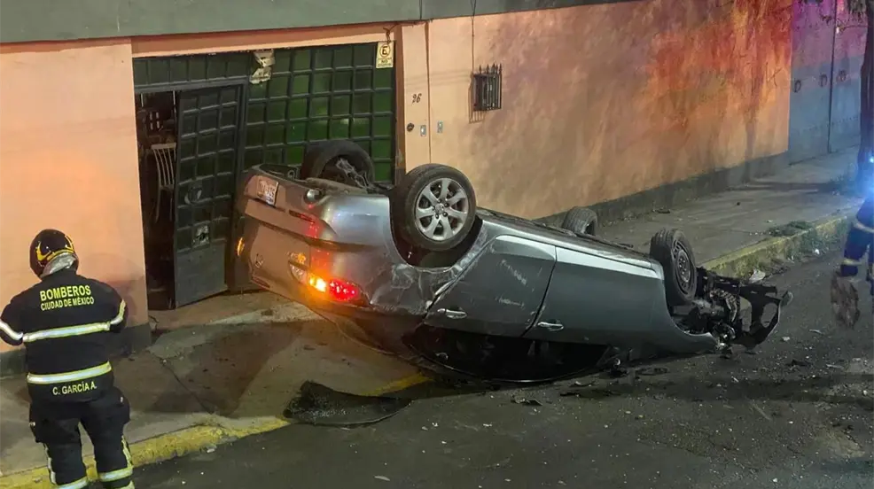 Ocurre sobre el circuito interior Río Churubusco, a la altura de la calzada de Tlalpan, en la colonia Ermita, donde tres personas viajaban a bordo de un vehículo compacto, que, al ir circulando exceso de velocidad, terminó volcado.