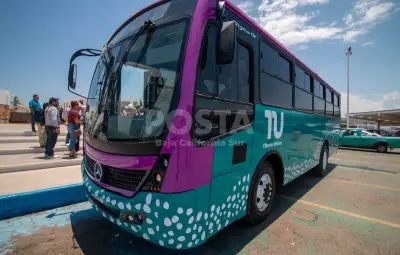 LA PAZ, Baja California Sur.- La presidenta municipal de La Paz, Milena Quiroga, presentó hoy los nuevos autobuses 'Tiburones Urbanos', que prometen transformar el transporte público en la ciudad. Las unidades cuentan con aire acondicionado, cámaras de vigilancia en tiempo real, botón de pánico y rampas para personas con discapacidad, garantizando un servicio seguro, cómodo y accesible.