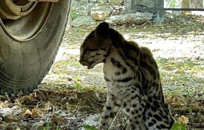 Tigrillo sediento durante la ola de calor pide agua en un taller de Tebec
