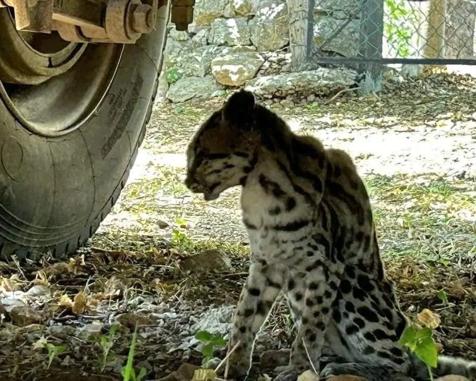 MÉRIDA, Yucatán.- En un conmovedor episodio que se hizo viral en redes sociales, un tigrillo salvaje se acercó a un taller mecánico en la comisaría de Tebec, Umán, en busca de agua debido a las altas temperaturas que azotan el estado de Yucatán. Jairo Chi, usuario de redes sociales y vecino del municipio, compartió las imágenes del felino llegando al taller y recibiendo agua de los trabajadores.
