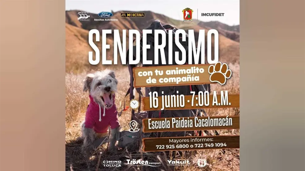 TOLUCA, Estado de México.- El Ayuntamiento de Toluca, a través del Instituto Municipal de Cultura Física y Deporte (IMCUFIDET), ha lanzado una invitación especial a todas las familias de la ciudad para participar en una jornada de senderismo junto a sus mascotas, con el objetivo de promover el deporte, el contacto con la naturaleza y el bienestar integral.