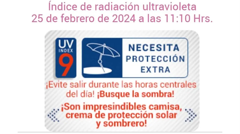 Se recomienda a la población mantenerse a la sombra, utilizar camisas de manga larga, aplicar protección solar y usar sombrero para reducir la exposición a los rayos UV.