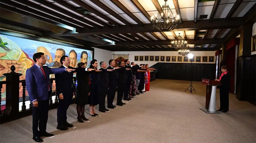 María Eugenia Rojano Valdés, Secretaria del Campo; Laura González Hernández, Secretaria de Desarrollo Económico; Nelly Minerva Carrasco Godínez, Secretaria de Cultura y Turismo; Hilda Salazar Gil, Secretaria de Contraloría; Alhely Rubio Arronis, Secretaria del Medio Ambiente; Pedro Moctezuma Barragán, Secretario del Agua; Mónica Chávez Durán, Secretaria de Mujeres; Daniel Andrés Sibaja González, Secretario de Movilidad, y Jesús George Zamora, Consejero Jurídico.