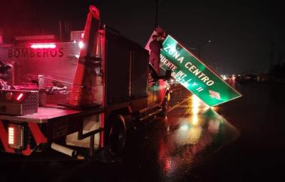 Tránsito y Vialidad, junto con la Guardia Municipal, han colaborado en acordonar áreas de riesgo y en sacar vehículos varados. Actualmente, la Secretaría de Servicios Públicos Primarios y la Comisión Municipal de Agua Potable y Alcantarillado (COMAPA) se han sumado a los trabajos de recuperación.
