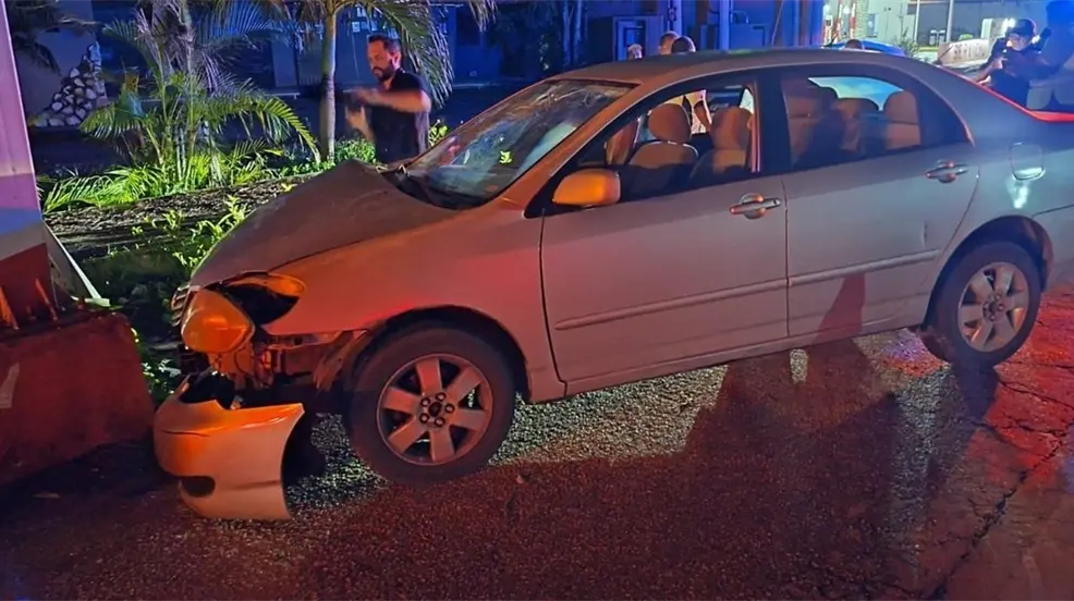 MÉRIDA, Yucatán.- Un accidente ocurrió la noche de ayer en el kilómetro 1 de la carretera Mérida-Motul, cerca del Bar 'Tropicana'. Una joven conductora al volante de un Toyota Corolla perdió el control de su vehículo y se estrelló contra la base de concreto de un señalamiento de bandera. El incidente se produjo cuando la mujer intentaba incorporarse a la vía principal sin percatarse de la presencia de otro coche con preferencia de paso. Para evitar una colisión mayor, maniobró bruscamente, lo que la llevó a impactarse contra el señalamiento.