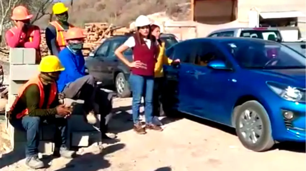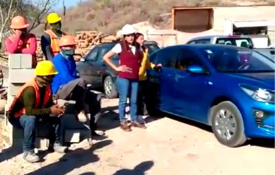 Un grupo de trabajadores confrontaron a Milena Quiroga en su visita de inspección de la obra, se comprometió a resolver el problema.