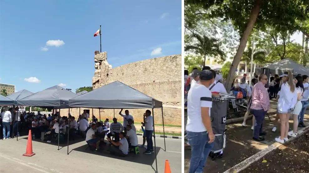 MÉRIDA, Yucatán.- En el tercer día consecutivo de protestas, los trabajadores del Poder Judicial en Mérida intensificaron sus acciones al bloquear la Glorieta del Monumento a la Patria, generando un caos vial en una de las zonas más transitadas de la ciudad, Paseo de Montejo. Desde tempranas horas de la mañana y hasta las 3 de la tarde, los manifestantes instalaron toldos y pancartas en el lugar, lo que obligó a la policía a realizar desvíos vehiculares en la zona.