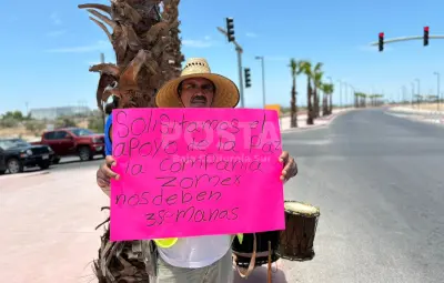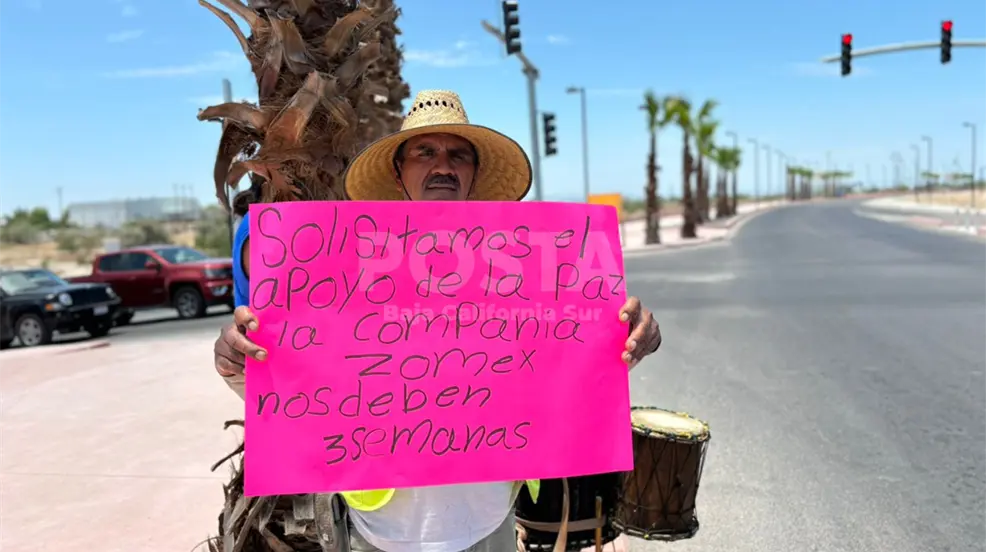 En un video en vivo exclusivo de Posta BCS, se observa a los trabajadores reunidos en el lugar de la protesta, exhibiendo pancartas y exigiendo el pago inmediato de sus salarios.