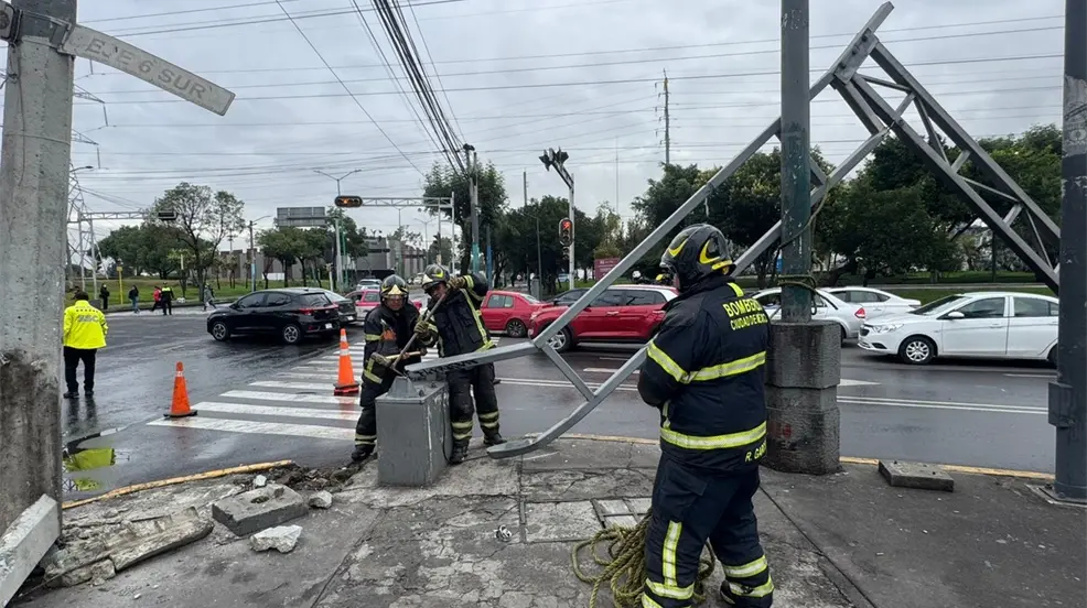 Bomberos capitalinos acudieron al sitio para realizar las maniobras correspondientes a fin de cortar la estructura metálica y así, poder retirarla del sitio, pues representaba un riesgo para los automovilistas y los peatones.