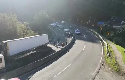 Tráileres atorados en curva: Caos en la carretera México-Toluca
