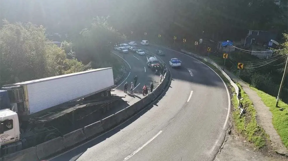 Estado de México.- La carretera libre México-Toluca se vio afectada esta mañana debido al cierre total de la circulación tras el incidente de dos tráileres que quedaron atorados en una curva, específicamente en el kilómetro 26, en dirección a la capital mexiquense.