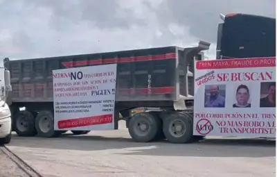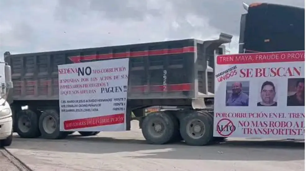 Los conductores aseguran que esperan un pago de 90mdp, esto debido a que el gobierno federal no ha pagado a los proveedores empleados en la construcción del Tren Maya
