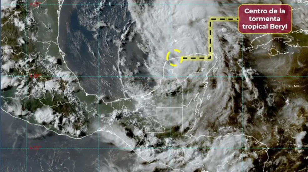 ¡Tras 11 horas!, Beryl se aleja de Yucatán como tormenta tropical