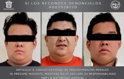 ZUMPANGO, Estado de México.- Herón de 33 años, Miguel de 25 años y Agustín de 23 años fueron detenidos por la Fiscalía General de Justicia del Estado de México por su probable participación en delitos contra el desarrollo urbano en el municipio de Zumpango.