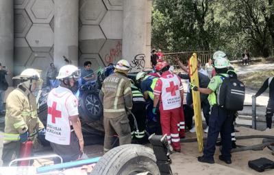 Una persona quedó prensada abordo de un vehículo; fue trasladado en helicóptero para su atención médica.