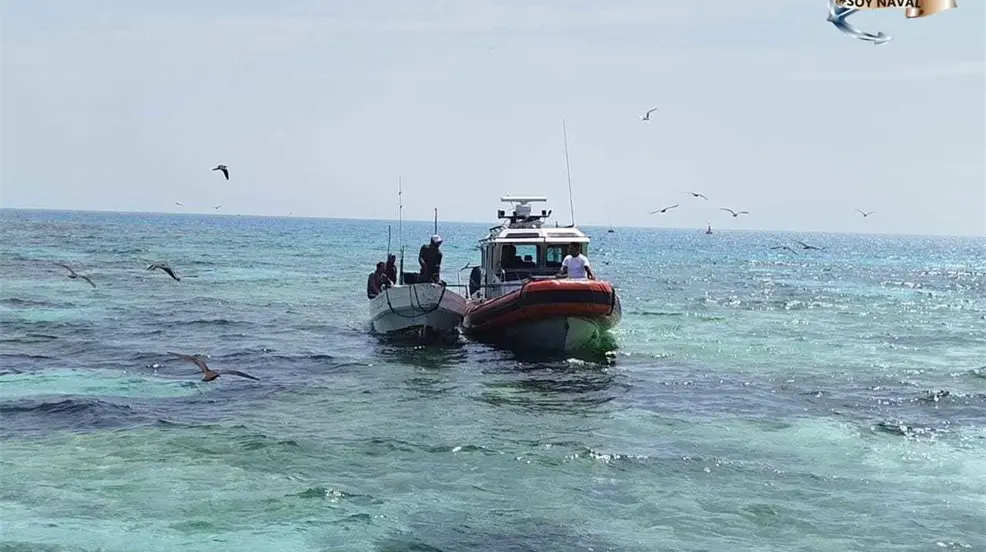 La acción de rescate se llevó a cabo durante un recorrido de patrullaje de vigilancia marítima en el área arrecifal de Alacranes, cuando avistaron la embarcación sin propulsión.