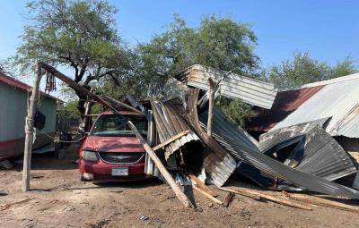 El saldo actual es de 22 domicilios afectados, en Tanque Blanco, inundaciones significativas y daños al tendido eléctrico en 3 postes de luz que se cayeron debido a los vientos huracanados.