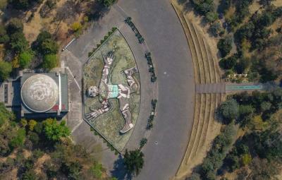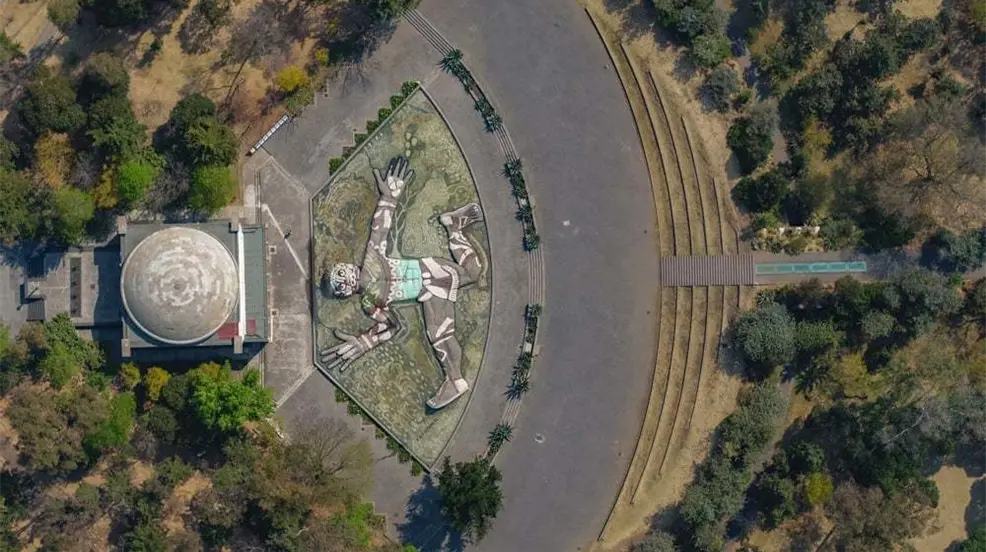 Aunque los aficionados a los drones han encontrado en Tláloc un sujeto perfecto para sus filmaciones aéreas, la escultura también puede ser apreciada a nivel de piso. Los detalles intrincados y la magnitud de la obra hacen que sea igualmente impresionante desde cerca, invitando a los visitantes a explorar cada rincón de esta majestuosa pieza.