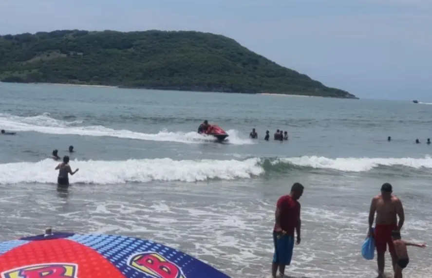 Esto pese a que las olas eran muy fuertes, por lo que al acudir elementos del Escuadrón de Rescate a prestarle ayuda, este los insultó e intentó agredirlos.