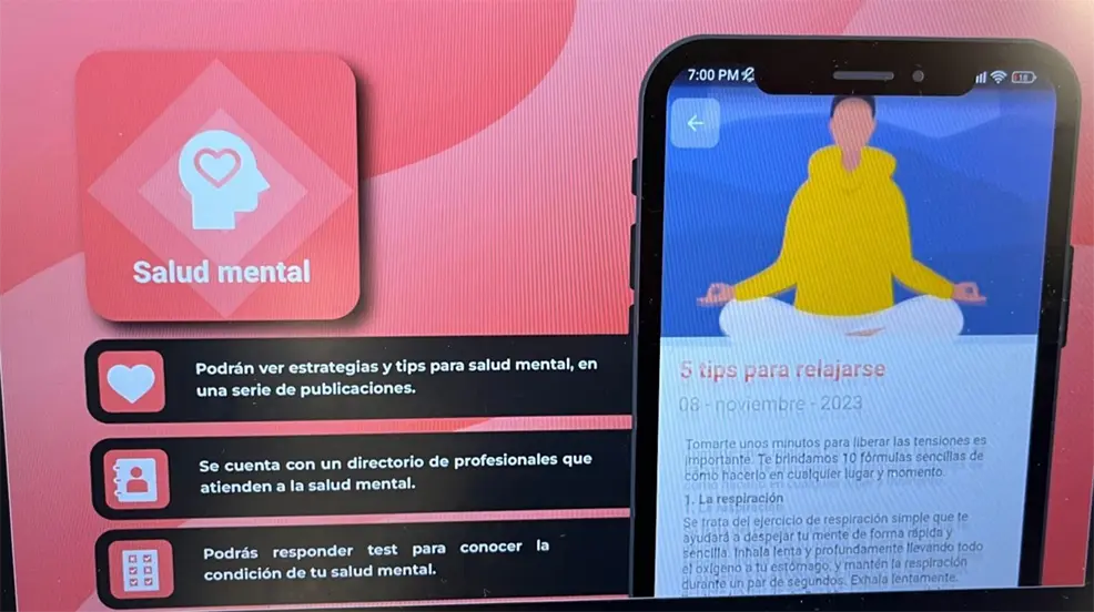 - SALUD MENTAL: Un apartado en el que los jóvenes tendrán acceso a tips para el manejo de diversas situaciones relacionadas con principalmente con el estrés, ansiedad y depresión, así como acceso a un directorio telefónico de profesionales de la salud mental disponibles para atender a quien lo requiera.