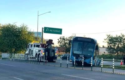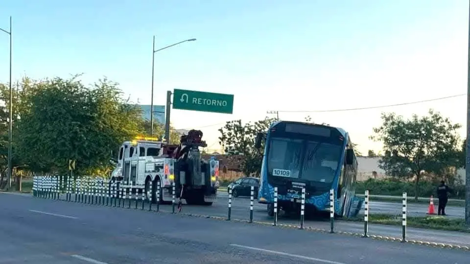 Unidad de Va y Ven queda dañada tras una maniobra en el periférico de Mérida