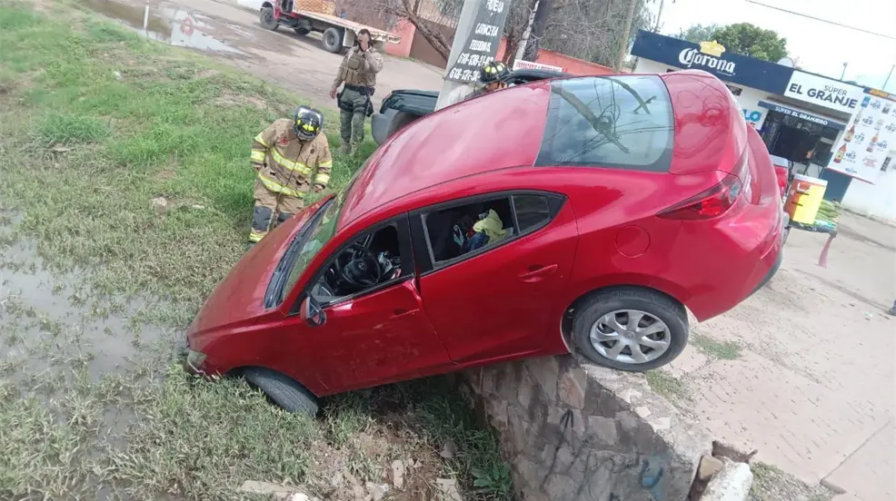 Un automóvil tipo sedán, cayó a un cuerpo de agua ubicado en una de las principales avenidas de Durango.