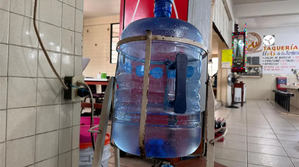 La señora Rosa Treviño, quien tiene su fonda en el mercado de Ciudad Madero, declaró que no pueden utilizar el agua de la Comapa debido a cómo llega.