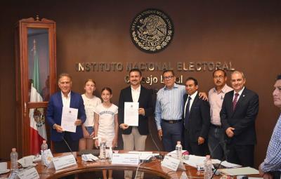 En sesión del INE, el Vocal Ejecutivo de la Junta Local del órgano electoral, Josué Cervantes Martínez, hizo entrega de los documentos que los acreditan como representantes en la cámara alta, luego de resultar vencedores en las elecciones del pasado domingo 2 de junio del 2024.