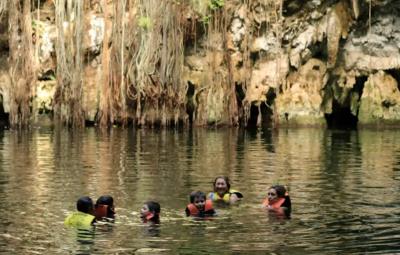 Nadar en un cenote: Los cenotes son pozos naturales de agua dulce que se encuentran en toda la península de Yucatán. Sumérgete en sus aguas cristalinas y descubre la belleza natural de estos lugares únicos.