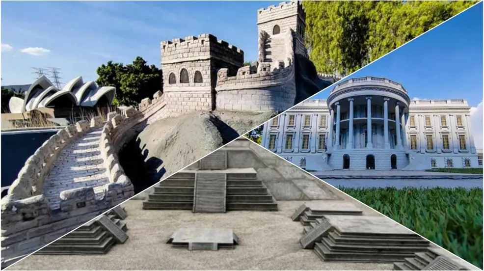 Además, el parque exhibe las siete maravillas del mundo moderno: