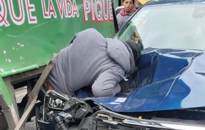Posteriormente, se dio aviso a las autoridades, quienes arribaron a la escena para brindar auxilio al individuo herido que se encontraba prensado entre las dos unidades. Lamentablemente, los elementos del Cuerpo Médico se percataron de que ya no contaba con signos vitales, mientras que su cómplice se dio a la fuga.