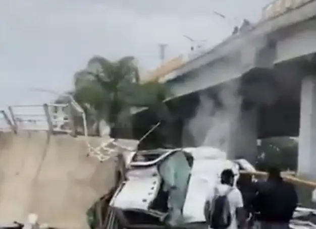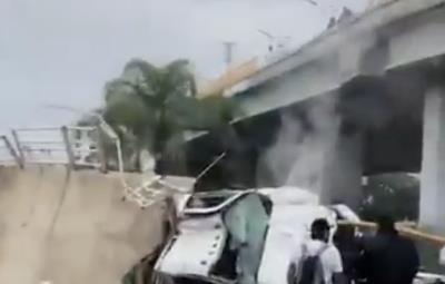 #VIDEO Conductor intenta huir tras accidente, salta de puente y sobrevive