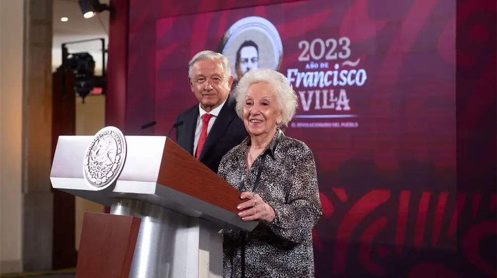 CIUDAD DE MÉXICO.- El Presidente Andrés Manuel López Obrador recibió a Estela de Carlotto, presidenta y fundadora de las Abuelas de Plaza de Mayo de Argentina, una organización reconocida por su labor en la búsqueda de personas desaparecidas durante la dictadura militar en Argentina. Durante la reunión, el Mandatario elogió la resistencia y la defensa de los derechos humanos de la señora De Carlotto.