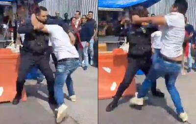 VIDEO: Policía y civil protagonizan pelea a puño limpio en Benito Juárez