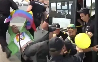 #VIDEO, Policías rusos reprimen a personas de comunidad LGTBIQ+ en mes del PRIDE
