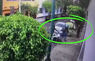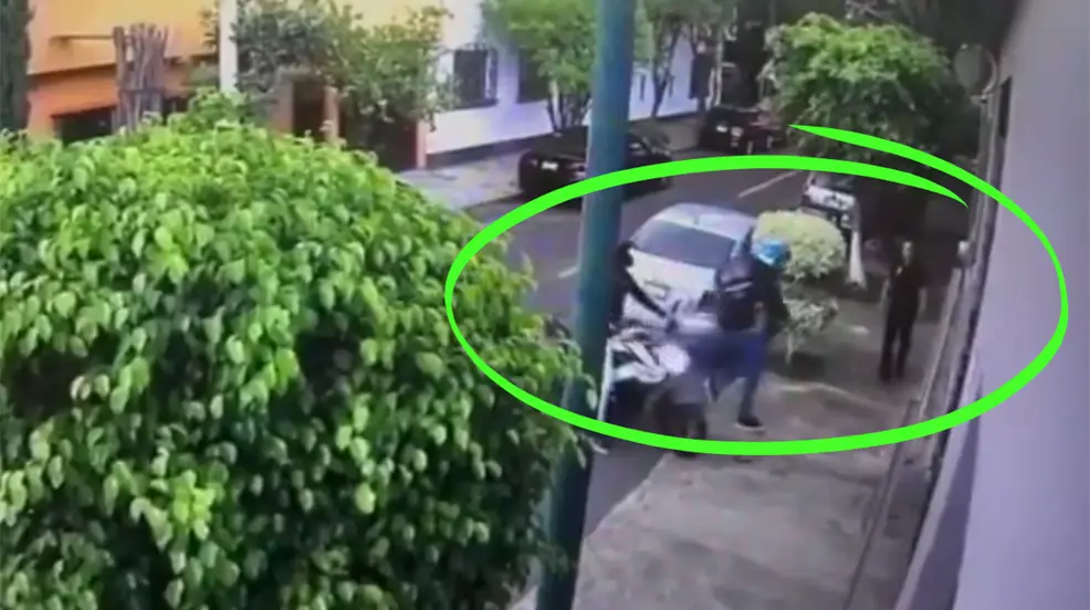 A través de cámaras de vigilancia se capturó el momento en que una motocicleta color blanco abordada por dos sujetos, uno de ellos portando una mochila de repartidor, se aproximó a la víctima. Pese a que el transeúnte se percató de que los motociclistas se estacionaron justo frente a él, no se alejó, pues no sospechó que fueran ladrones. Fue hasta que el sujeto con la mochila de repartidor se acercó abruptamente cuando se percató de las intenciones de este.