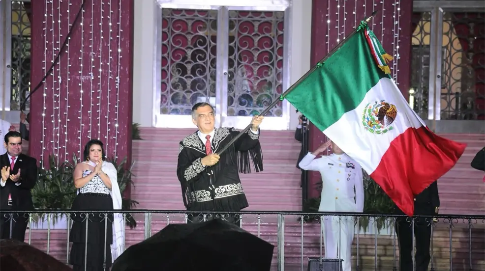 En una noche de fiesta, ante una abarrotada Plaza Juárez, el gobernador Américo Villarreal, acompañado por su esposa, la presidenta del DIF Estatal, doctora María de Villarreal, y los titulares de los Poderes Legislativo y Judicial, salió al pórtico principal de Palacio de Gobierno. Tras recibir la Bandera Nacional de manos de la Escolta del 77 Batallón de Infantería, evocó el llamado del Padre de la Patria, Miguel Hidalgo, al pueblo de Dolores aquella madrugada del 16 de septiembre de 1810.
