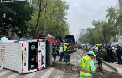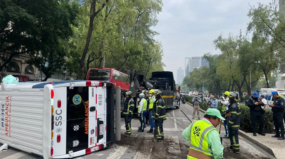 Volcadura de ambulancia en Reforma deja a cuatro personas heridas
