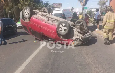 DURANGO, Durango.- Una volcadura se registró en la capital del estado teniendo como saldo una persona lesionada, misma que fue trasladada a un nosocomio para atenderlo de manera urgente.