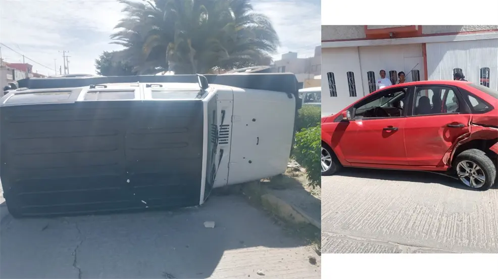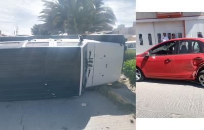 Vuelca un Jeep tras choque contra un auto y hay dos lesionados leves
