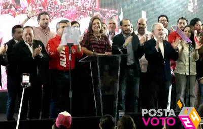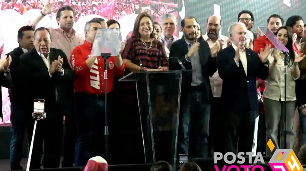 Alrededor de las 00:56 horas, fue conocido el posicionamiento de la oposición, encabezado por Gálvez, tras el mensaje de Guadalupe Taddei, consejera Presidenta del INE, donde se reveló las tendencias de preferencia de voto de la ciudadanía, cuyos resultados no la favorecían.