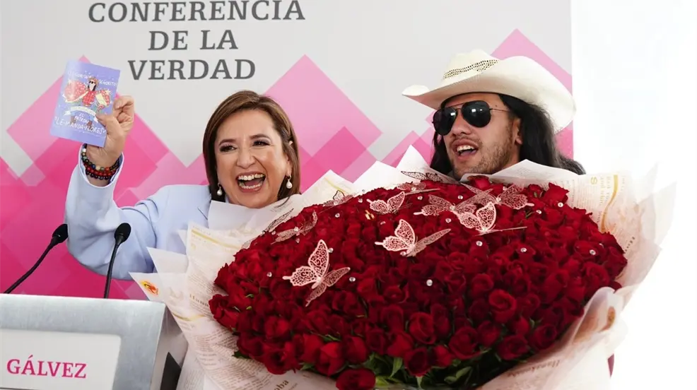 CIUDAD DE MÉXICO, México.- En su última “Conferencia de la Verdad” previa al arranque de su campaña oficial, Xóchitl Gálvez, candidata presidencial de la coalición “Fuerza y Corazón por México” fue sorprendida por un personaje que irrumpió en la “ManaNeta” con un enorme ramo de rosas rojas.