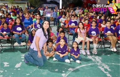 Durante el evento, Abdala interactuó con los niños de manera cercana y cordial, demostrando que no solo los padres de familia, sino también los pequeños, la reconocen y la llaman por su nombre. Se comprometió a brindarles una atención de calidad cuando sea elegida como alcaldesa, el próximo 2 de junio.
