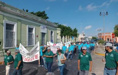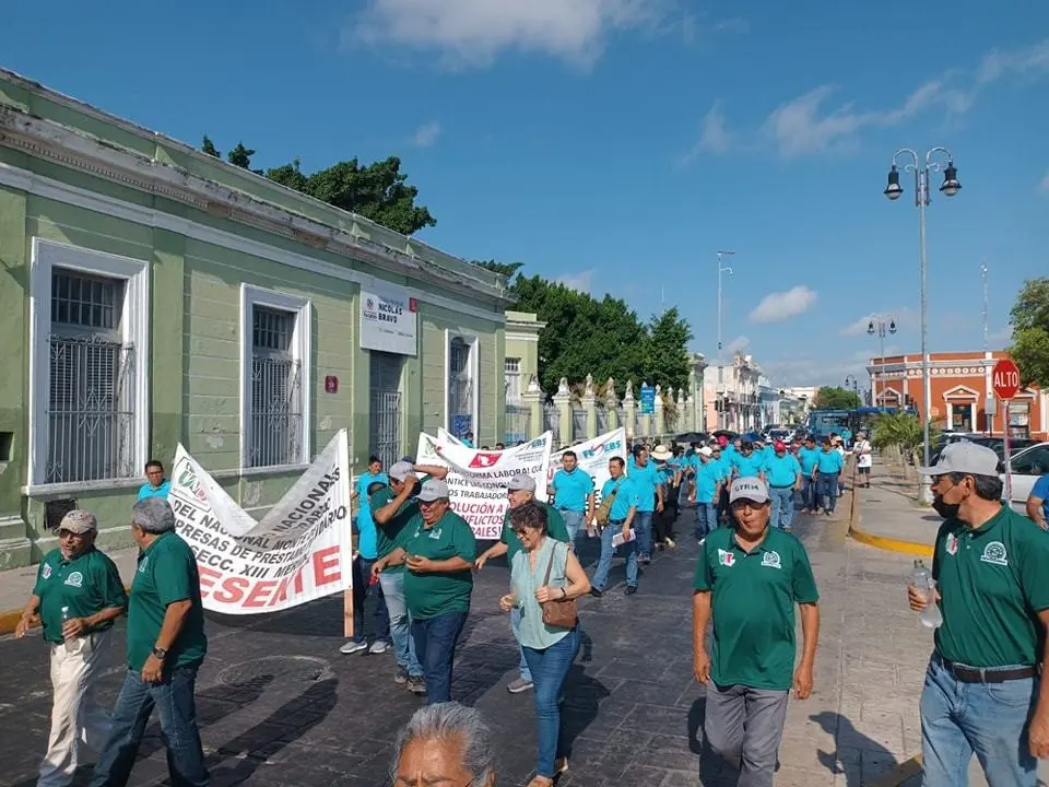 MÉRIDA, Yucatán.- Un contingente integrado por trabajadores yucatecos de diversas organizaciones marchó este 1 de mayo, Día del Trabajo, por las principales calles del centro de Mérida para exigir mejores condiciones laborales, entre las que estas aumentos salariales y prestaciones.