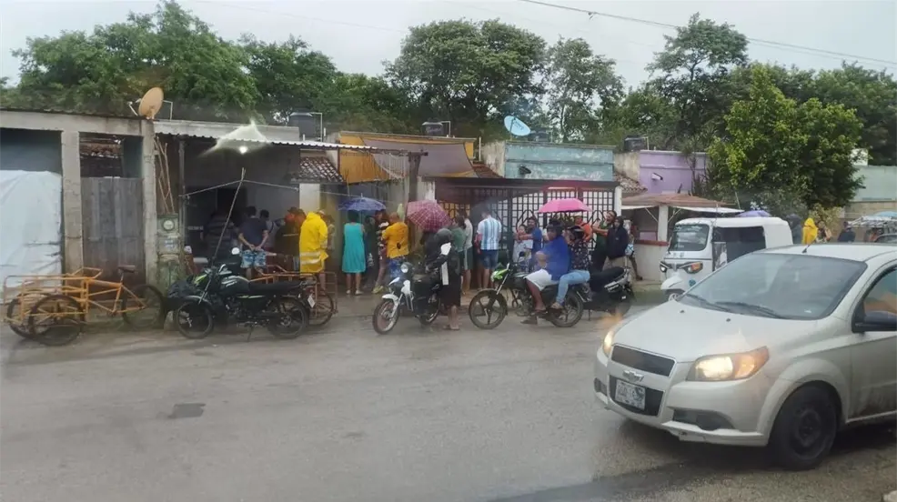 En redes sociales circularon imágenes de un puesto de venta del platillo tradicional yucateco que estaba abarrotado a pesar de la lluvia