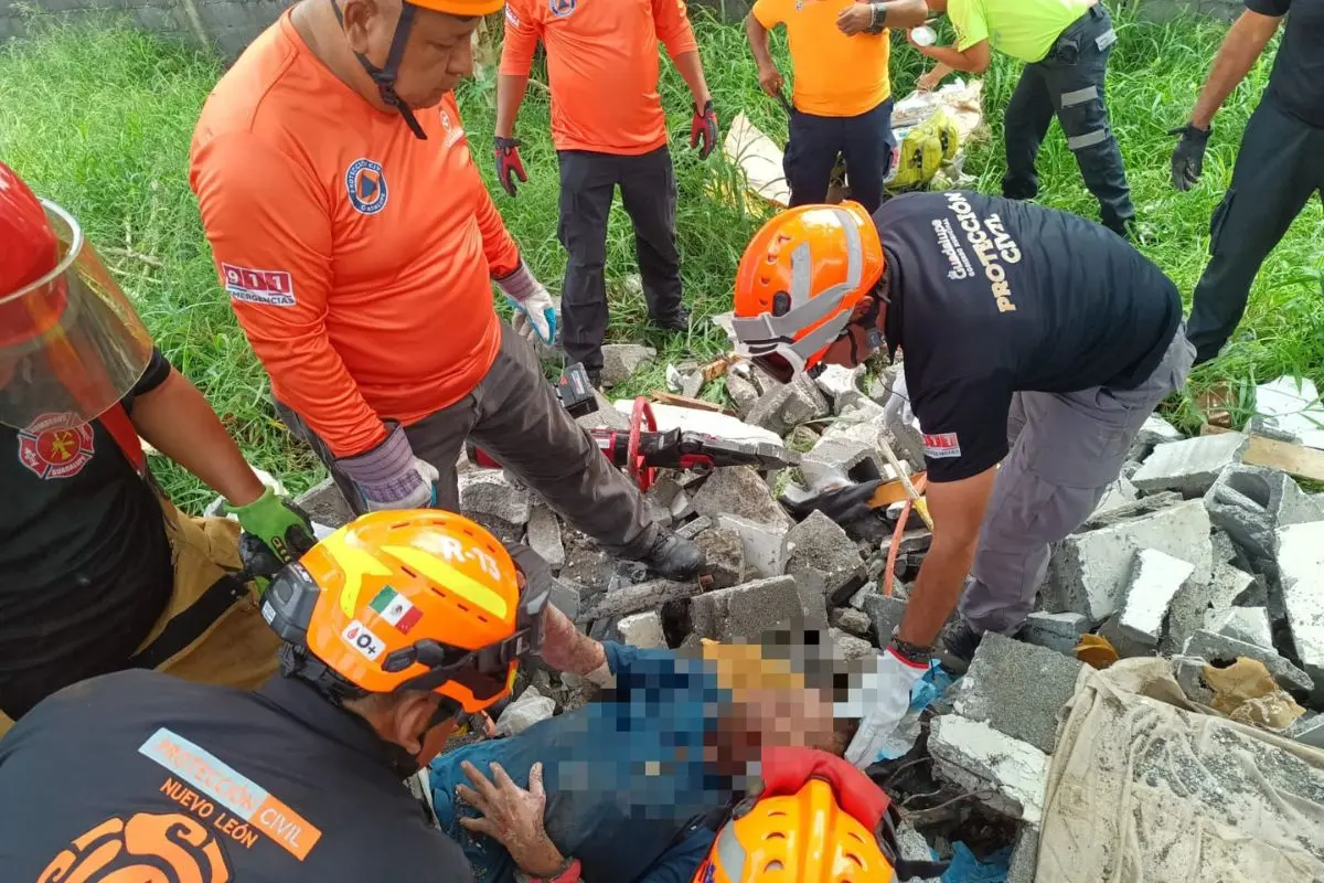 Autoridades de Nuevo León rescataron a una persona atrapada tras la caída del techo de un domicilio en Guadalupe.