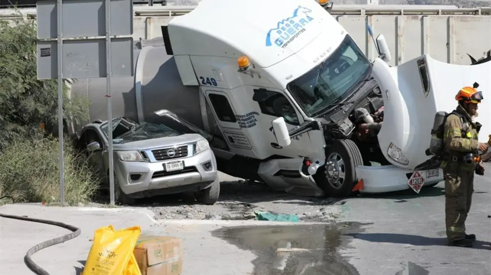 El choque se registró en el entronque hacia la avenida Luis Donaldo Colosio y la Vía a Saltillo, uno de los puntos con mayor flujo de transporte pesado en el municipio de Santa Catarina.