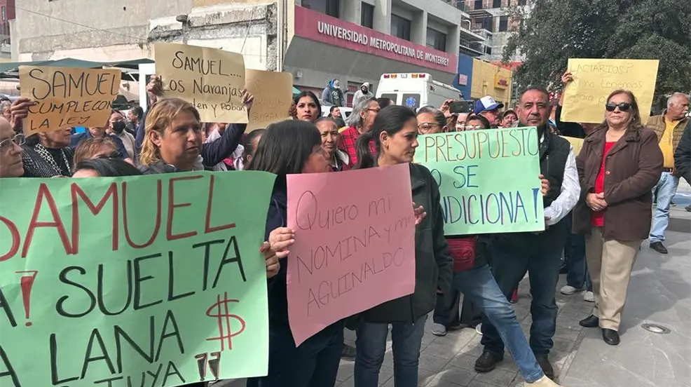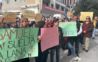 Después de reunirse con el tesorero, Carlos Garza, en las oficinas ubicadas en la calle Escobedo en el centro de Monterrey, y según dijeron al no obtener respuesta, decidieron caminar hasta llegar al Palacio de Gobierno, en donde les comentaron que no se encontraba el gobernador y que no iba a regresar por el día de hoy.